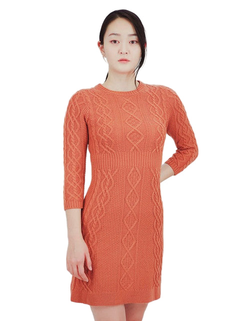 Cable Knit 3/4 Sleeve Mini Sweater Dress