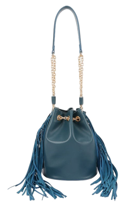 Add a splash of fun to your look with this Fringed Accent Boho Bucket Bag in vibrant teal. Its playful fringe detailing brings carefree boho vibes, while the spacious bucket design holds all your essentials with flair. Perfect for hands-free adventures, this bag effortlessly blends style and practicality for your everyday escapades.