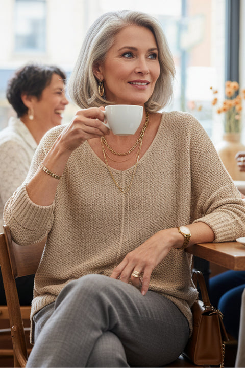 The B. Store Magic Sweater 2026 Update is designed for effortless comfort with a modern, relaxed attitude. Crafted from a soft waffle knit that provides lightweight warmth and breathable stretch, this oversized sweater drapes naturally on the body for all-day ease. A flattering V-neckline adds visual length and makes layering simple, while dropped shoulders and long sleeves enhance mobility and relaxed wearability. Finished with ribbed cuffs and hem for shape retention, a split side hem for ease of movement, and a high-low silhouette for balanced coverage, this piece delivers cozy functionality with a refined, contemporary feel—perfect for lounging, layering, or everyday styling.