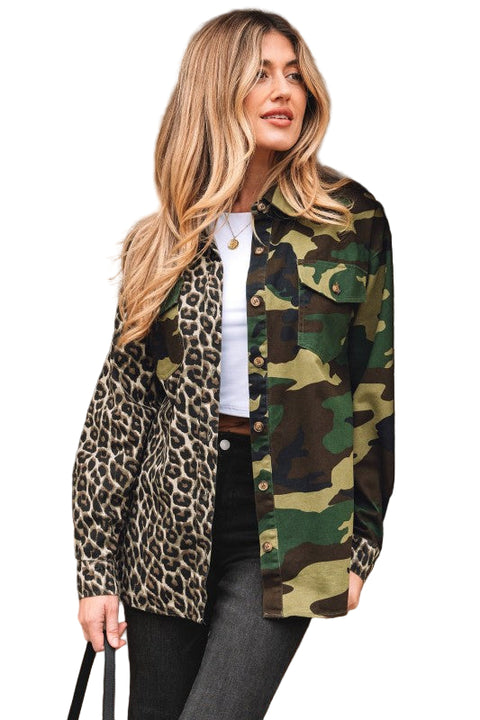 Leopard Camo Patchwork Oversized Shacket