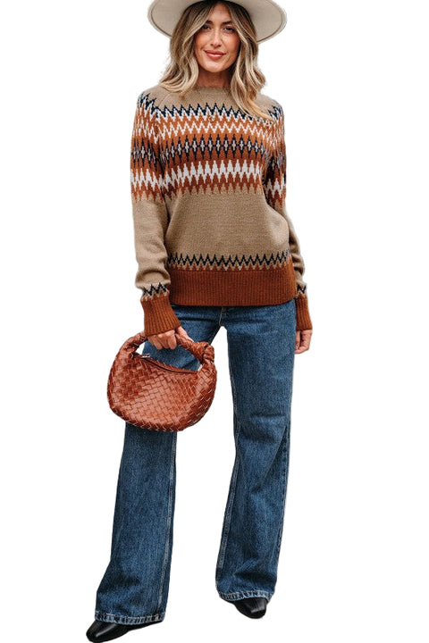 Wrap yourself in cozy charm with the Eva Aztec Crew Neck Sweater in khaki. This playful knit blends classic crew neck comfort with a subtle, eye-catching pattern, perfect for brightening up chilly days. Easy to pair and endlessly comfy, it’s your new go-to for casual adventures or relaxed weekends.