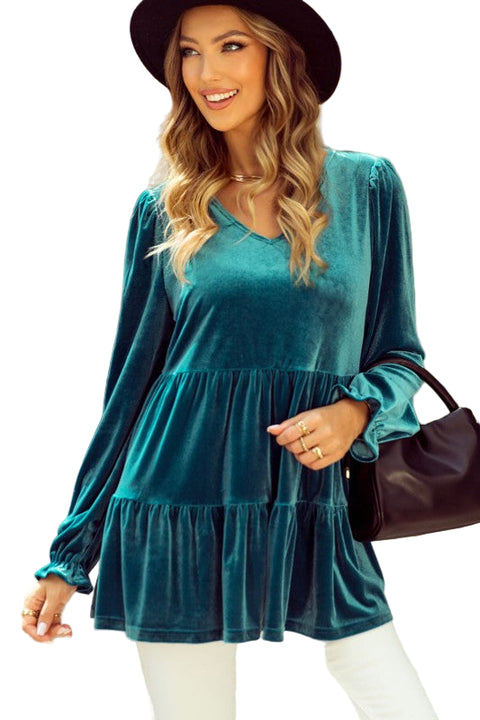 Add a splash of whimsy to your wardrobe with the Jasmine Velvet V Neck Puff Sleeve Blouse in sea green. This playful top pairs soft velvet texture with charming puff sleeves and a flattering V neckline, creating a look that's both cozy and flirty. Perfect for turning heads and sparking smiles on any occasion!