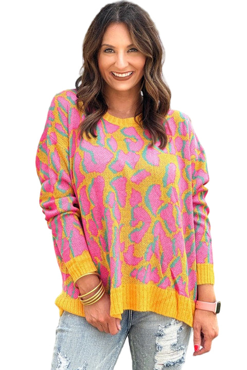 Brighten your look with this Abstract Print Ribbed Trim Baggy Sweater, bursting with fun orange and pink shades. Its comfy, loose fit and ribbed trim add a playful touch to any outfit, making it your perfect go-to for cozy, colorful style on the move.
