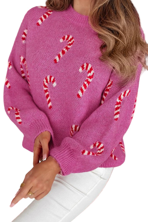 Christmas Candy Cane Drop Shoulder Sweater