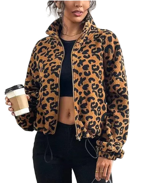 Leopard Print Fleece Zip-Up Jacket