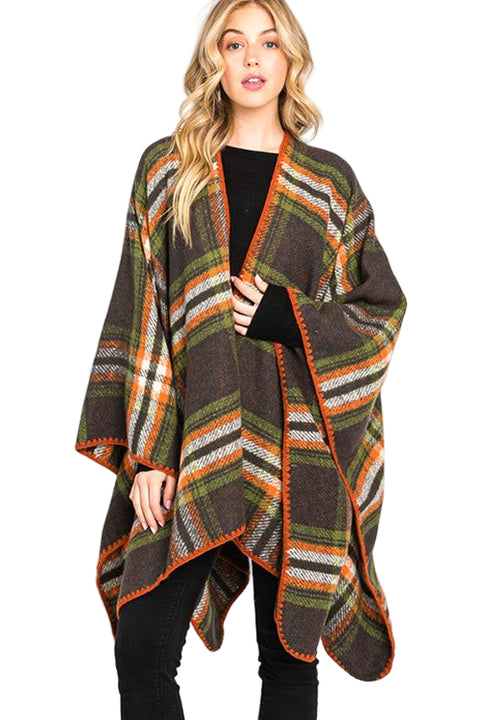 Add a pop of cozy charm with the Overcast Stitch Plaid Print Ruana Cardigan. Available in vibrant green and orange plaid or a sophisticated gray and mulberry plaid, this ruana wraps you in warmth and style. Perfect for layering on crisp days, its playful plaid patterns bring a fresh twist to your outfit while keeping comfort front and center.
