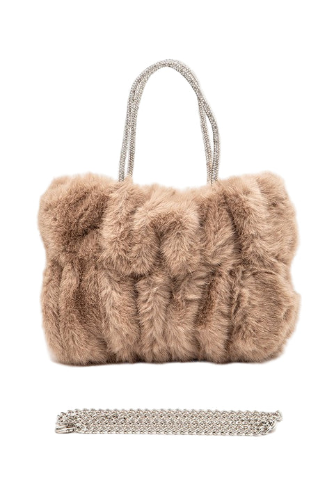 Rhinestone Top Handle Faux Fur Winter Tote Bag
