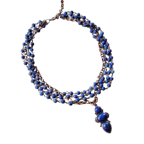 Blue Lapis Beaded Collar Necklace With Lapis Pendant