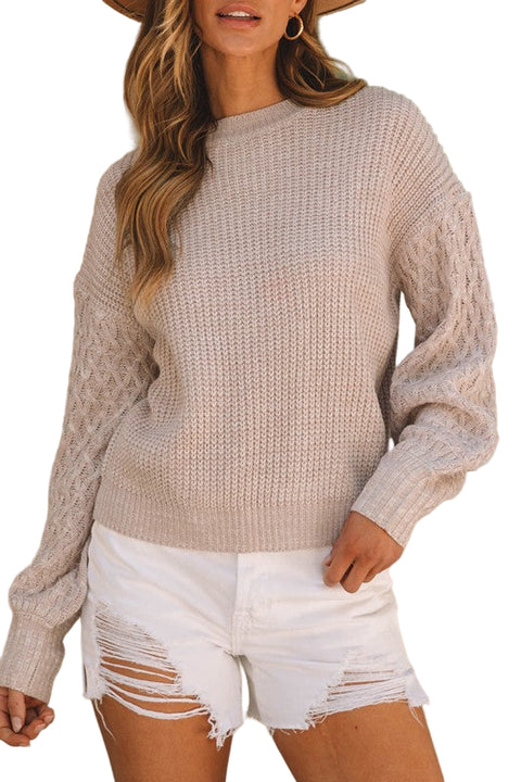 Cozy up in style with this khaki Cable Knit Sleeve Drop Shoulder Sweater. Its chunky cable knit sleeves bring texture and fun, while the relaxed drop shoulder design adds an easygoing vibe perfect for laid-back days. Whether you're curling up with a book or stepping out for a casual stroll, this sweater keeps you snug and stylish with a playful twist.