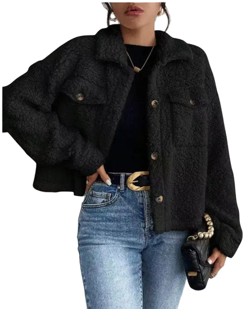 Wrap yourself in cozy charm with this Collared Button Faux Fur Short Coat, available in classic black and winter white. Its plush texture brings warmth and a touch of playful elegance to any outfit, perfect for turning heads while staying snug during chilly days. Easy to button up and style, this short coat is your new go-to for adding fun and flair to your winter wardrobe.