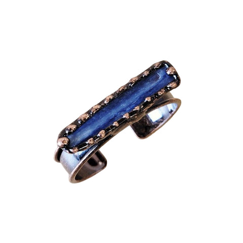 This genuine natural kyanite cuff bangle bracelet is handmade with care, featuring an adjustable design to fit comfortably on your wrist. Its unique blue hues bring a serene, earthy vibe to your boho style, making it a perfect accessory for any casual or festival look. Embrace natural beauty with this effortlessly stylish piece that adapts to you.