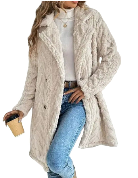 Wrap yourself in cozy charm with our Houndstooth Pattern Fleece Coat, available in creamy ivory and warm tan. Its soft fleece fabric promises snug comfort while the classic houndstooth print adds a playful twist to your chilly-day style. Perfect for layering, this coat turns heads and keeps you feeling delightfully warm wherever you go.