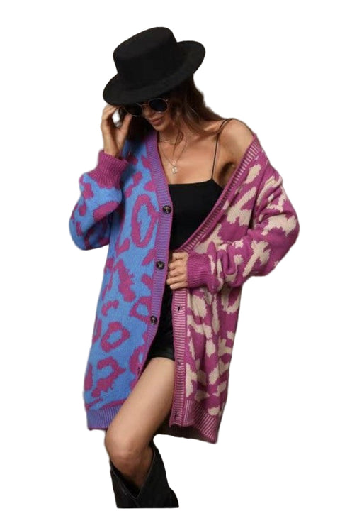 Wrap yourself in cozy charm with this Long Leopard Knit Cardigan, featuring playful pink and blue accents that brighten any outfit. Soft and stylish, it's perfect for adding a fun twist to your everyday look while keeping you comfortably warm. Embrace bold prints with a splash of color for a standout style that’s both charming and comfy.